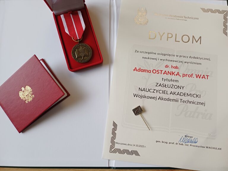 Za szczególne osiągnięcia w działalności dydaktycznej, wychowawczej i naukowej dr hab. Adam Ostanek, prof. WAT otrzymał Medal Komisji Edukacji Narodowej – jedno z najwyższych odznaczeń przyznawanych w środowisku edukacyjnym za wybitny wkład w rozwój polskiej oświaty i nauki.